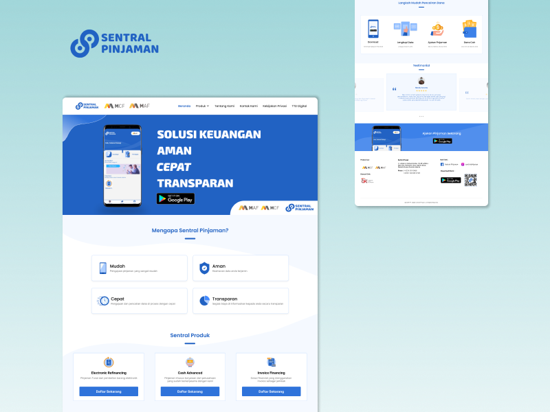 Website produk finance bernama Sentral Pinjaman yang berisikan informasi terkait produk dan layanan dari aplikasi Sentral Pinjaman.